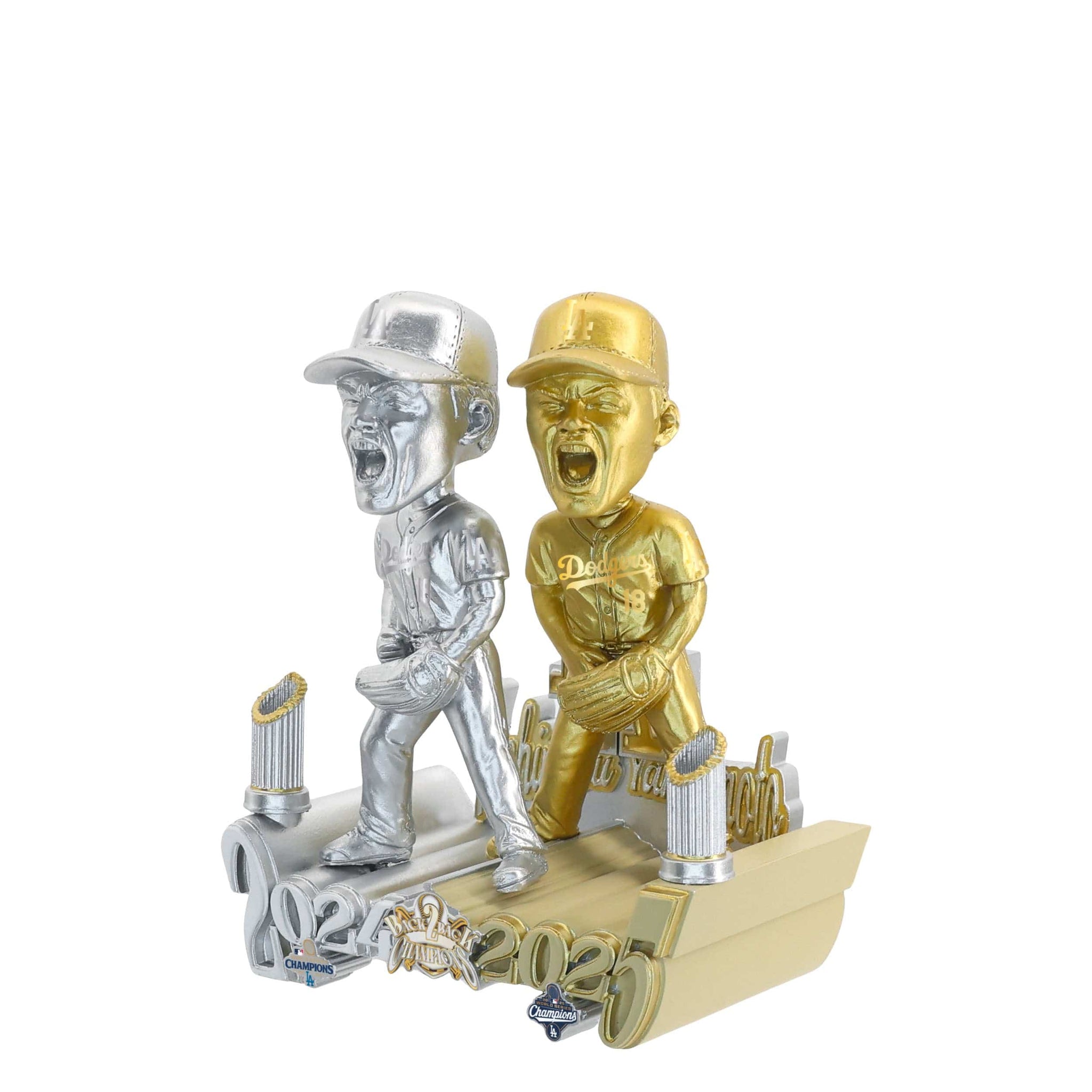 Back-to-back brilliance deserves double the celebration. Multiply your victory celebration with the Yoshinobu Yamamoto Los Angeles Dodgers 2025 World Series Back to Back Champions Then And Now Bobblehead!