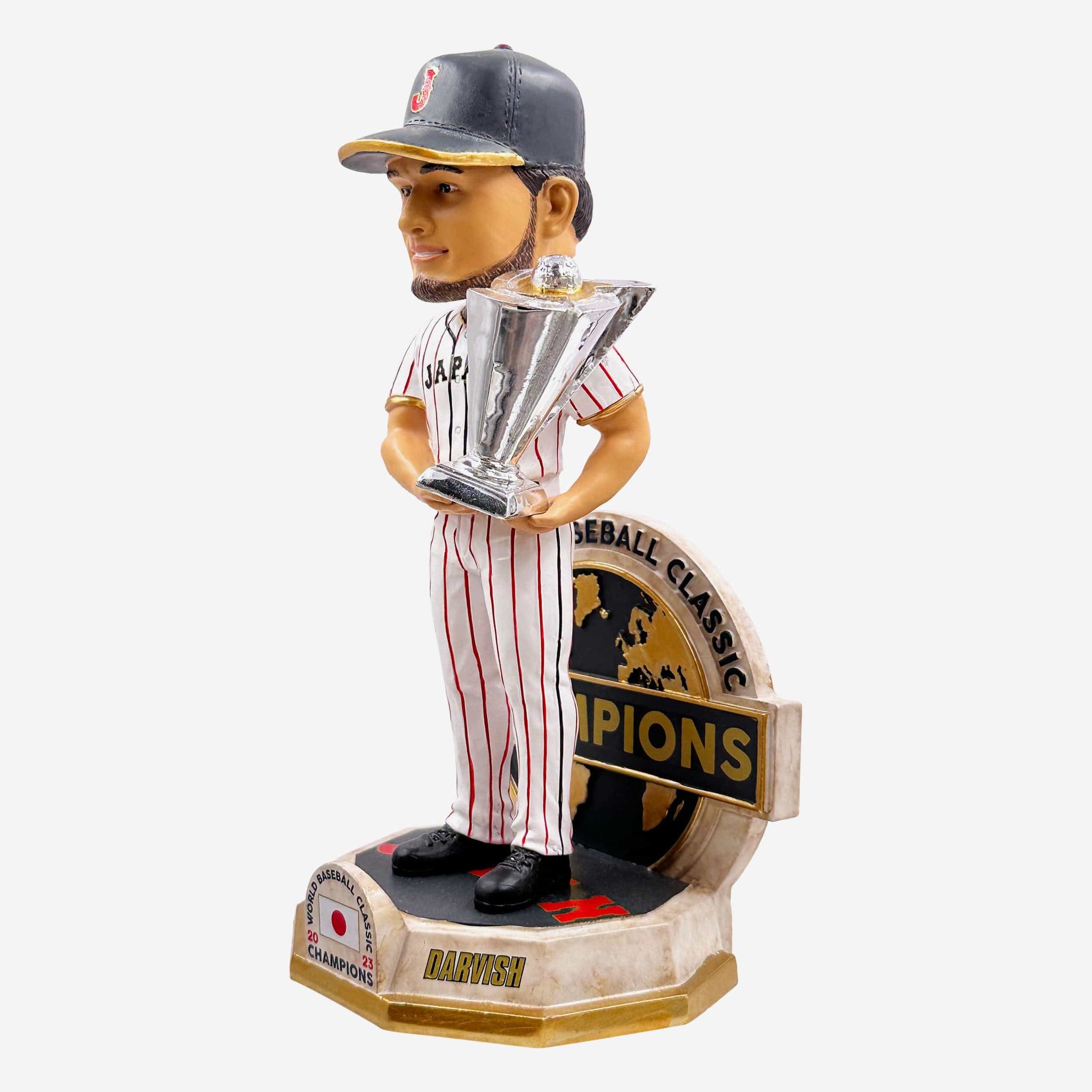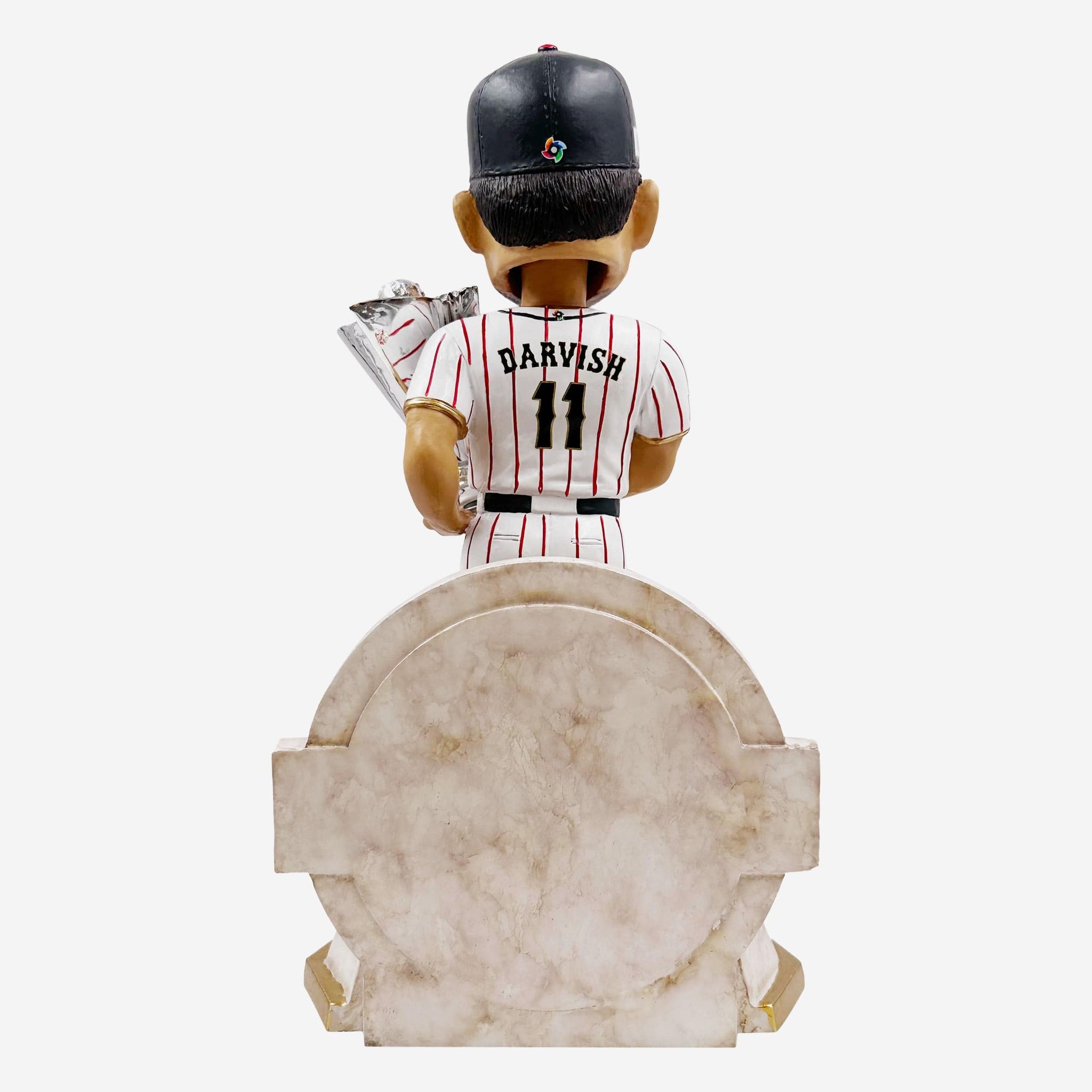 - Portrays Darvish wearing his white gameday uniform and holding a miniature championship trophy accent, because he's GOTTA show off the hardware